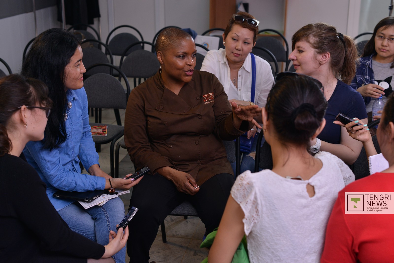 Посетители задавали гостье самые разные вопросы. Спрашивали о ее ресторане, на сколько мест он рассчитан, сколько людей там работает. Интересовались и тем, что нужно сделать, чтобы открыть свой собственный ресторан. Кроме того, были вопросы и бытового характера. К примеру, один из казахстанцев спросил, куда девают растительное масло в ее ресторане после первой обжарки. Таня Холланд честно рассказала, что масло в ее заведении при приготовлении используют дважды, но после первого использования его фильтруют. На что астанчане пошутили, что в Казахстане на одном масле готовят до десяти раз.