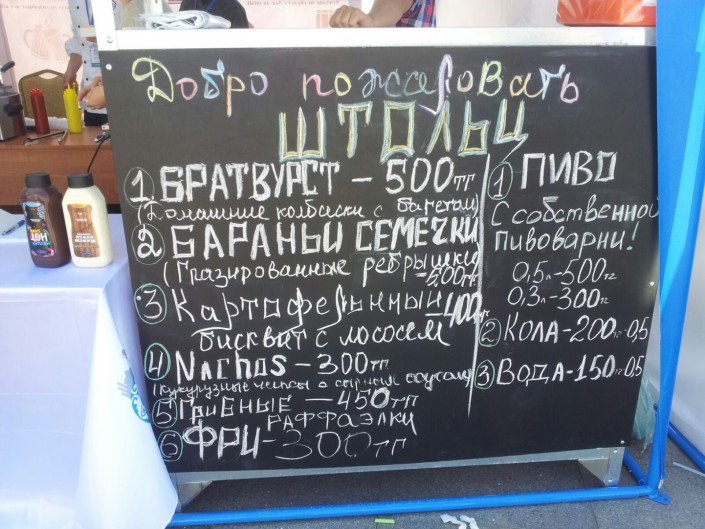Вход в парковую зону, где проходит фестиваль, платный: для взрослых - 2000 тенге, детям до 12 лет бесплатно, для пенсионеров и инвалидов при предъявлении удостоверения предусмотрена 50-процентная скидка. Впрочем, сама еда тоже стоит денег. А вот продегустировать блюдо или напитки можно было бесплатно.