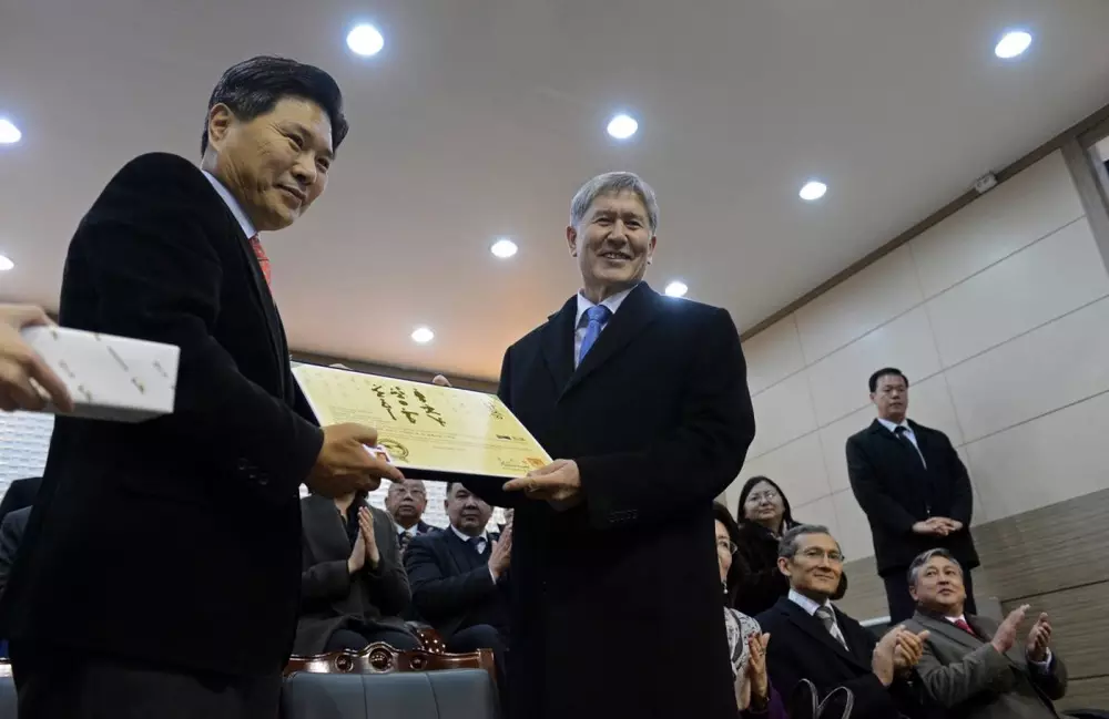 Соответствующий сертификат Атамбаеву в Сеуле вручил президент Всемирного центра академии таэквондо Ли Кю Хон. Главе государства и членам делегации было продемонстрировано показательное выступление спортсменов, отмечается в релизе. В ходе посещения академии стороны обсудили дальнейшие перспективы развития таэквондо в Кыргызстане.