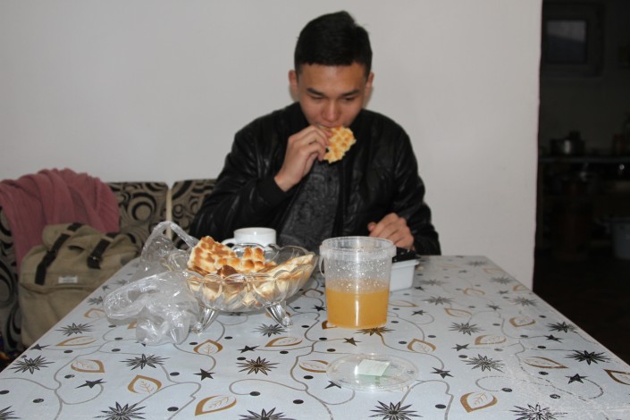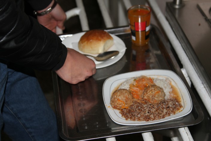 Үзіліс арасында оқу орнындағы асханадан тамақтанып алады. Ол да жаттығу залына баратын күні ғана, жаттығу үшін күш керек дейді. Жай күндері түскі асы бір самсамен де шектеледі екен. Оқу орнындағы асхананың тағамдары тойымды әрі арзан болып шықты.