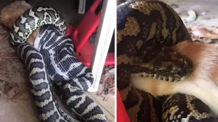 Инцидент произошел в местности Эерва-Вейл, регион Саншайн-Кост. Гигантский ромбический питон убил животное и начал заглатывать его с головы. Хозяева кошки обратились за помощью к змеелову Люку Хантли. Когда он приехал, кошку было уже не спасти.