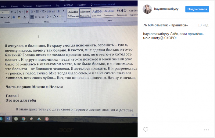 Ранее Баян Есентаева выкладывала отрывок из книги.