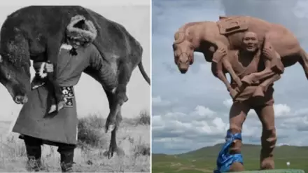 Ал екінші суреттегі ескерткіште де Балуан Шолақ бейнеленбеген. Жылқыны көтеріп тұрған суреттегі ескерткіш қазақ палуанының құрметіне қойылмаған. Алайда мұнда да екіұшті мәселемен бетпе-бет келеміз. Бұл ескерткішке қатысты тывалықтар мен моңғолиялықтар өз батырына орнатылған деген талас пікір айтады.