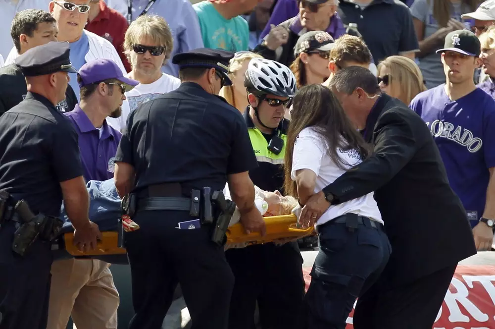 В США во время бейсбольного матча между "Корорадо" и "Сан-Франциско" мяч попал в голову пенсионерке Джуди Риз, которая в этот день праздновала свое 69-летие, сообщается на официальном сайте MLB. Роковой удар нанес игрок "Колорадо" Майкл Каддайер. Со стадиона женщину госпитализировали в одну из больниц Денвера. У нее было диагностировано сотрясение мозга, однако после оказания медицинской помощи болельщицу отпустили домой. Отметим, что матч из-за этого инцидента был прерван на некоторое время. "Никому бы не хотелось увидеть нечто подобное. Это ужасно. Я видел, как мяч после моего удара попал ей в голову. Очень надеюсь, что с бабушкой все будет хорошо. Это страшно...", - отметил после матча Каддайер.