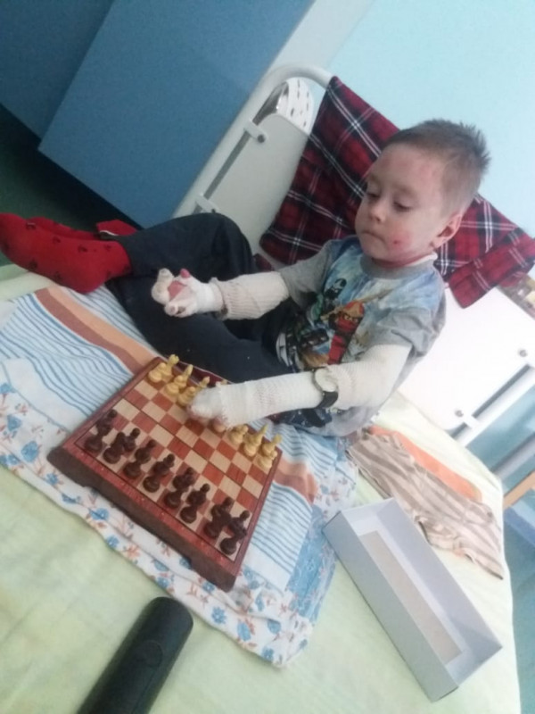 Мальчик встречает нас за шахматной доской - играет со старшим братом. При виде новых людей сразу оживляется и серьезно, совсем по-взрослому представляется: "Артур". Протягивает забинтованную по самое плечо руку. Бинты везде: на ножках, шее, груди.