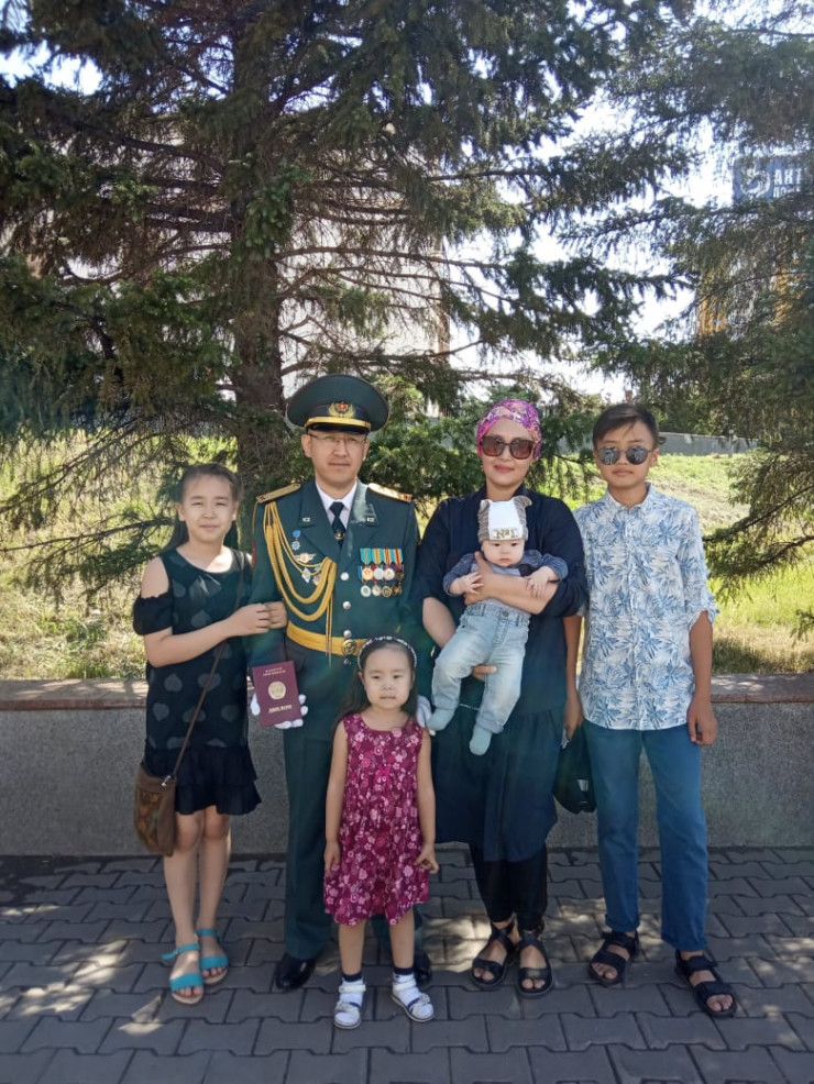 "Тамызда пневмониямен ауырдым. Еңбек демалысына енді шыққан едім, жөтеле бастадым. Сөйтіп, жақын маңдағы ауруханаға барып тексерілдім. Пневмония диагнозын қойды. Үйден емделіп, ешқайда шықпай, дәрігерлер жазып берген дәрі-дәрмекті іштім. Зімбір денсаулыққа пайдалы деген ақпарат тараған еді сол кезде, оны да пайдаландым. Он күндей дене қызуым көтеріліп, жаттым. Жарым да менімен бір уақытта ауырды. Балаларым да ауырып шықты. Жолдасым бесінші баламызға жүкті. Мен содан қорқып едім. Себебі күн сайын коронавирус пен пневмония статистикасы өсіп, қайтыс болғандар саны артып жатты. Жарты сағат сайын түрлі жаңалық шығады. Соның бәрін оқып, уайымдадым. Бірақ қазір бәрі жақсы", - дейді әскери қызметші.