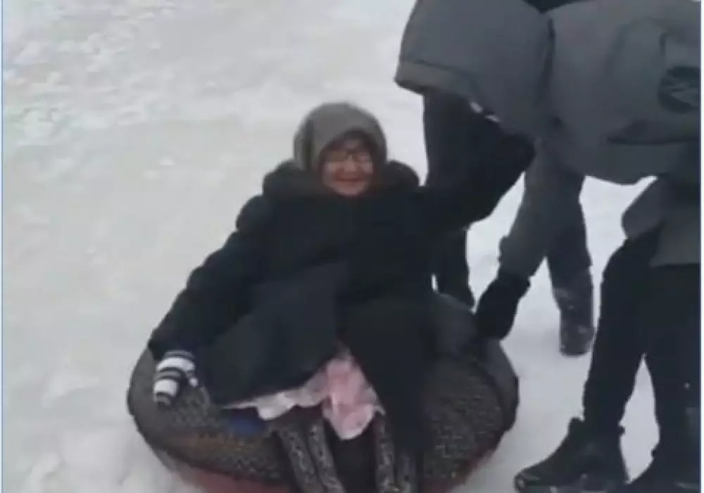 Видео с 85-летней женщиной, катающейся с ледяной горки на "ватрушке", умилило пользователей Сети, передает Tengrinews.kz.