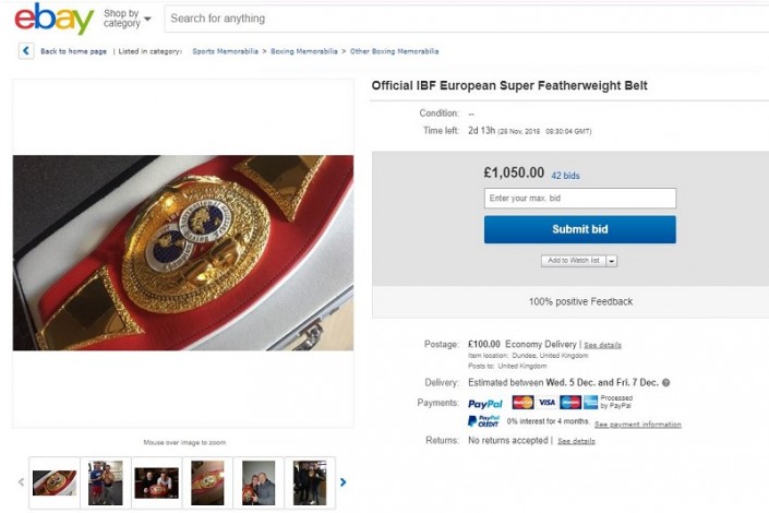 "Я продаю мой официальный пояс чемпиона IBF во втором полулегком весе, который выиграл в феврале. Продаю без резерва, поскольку следующего поединка не будет из-за травмы соперника, так что у меня нет денег, чтобы купить сыну рождественские подарки", - заявил Кларк.