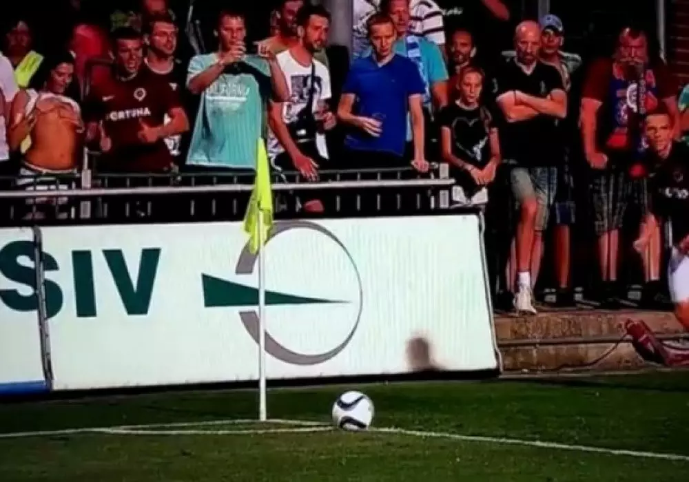 Болельщица показала футболистам грудь во время матча в Чехии Кадр из видео с сайта youtube.com
