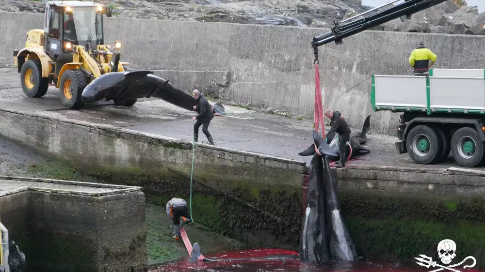 "Фарерцы едят мясо дельфинов и защищают традицию под названием "гриндадрап", которая позволила их предкам выжить во враждебном климате, в то время как сегодня их супермаркеты полны всевозможной еды, однако охота все равно продолжается", - говорится в сообщении группы по охране животных в Instagram.