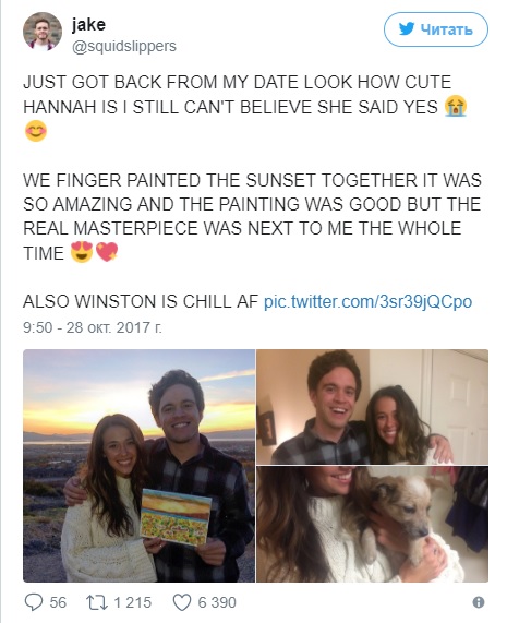 В результате Ханна согласилась на предложение Джейка, и они провели вечер в обществе друг друга и ее пса по кличке Уинстон.