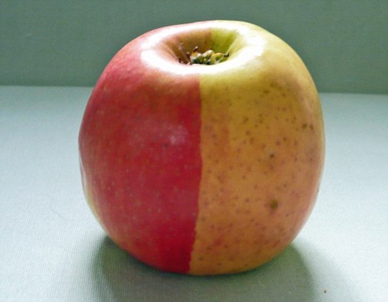 По словам экспертов, это очень редкое природное явление. Оно может быть результатом случайной генетической мутации, вызванной аномально холодной погодой, колебаниями температуры или повреждениями насекомыми. При этом, шансы, что яблоко будет четко разделено по цвету таким образом равны миллион к одному.