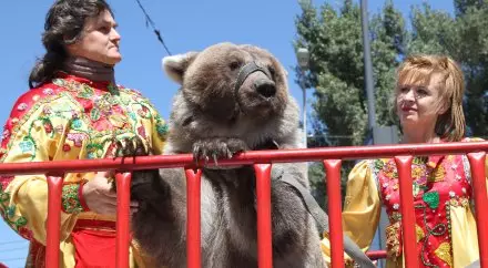 По улицам Алматы прошла цирковая кавалькада в честь 45-летия Казахского государственного цирка, передает корреспондент Tengrinews.kz. В ней приняли участие более 12 животных и 60 артистов. Среди животных - лошади, верблюд, крокодил, медведь, коза и павлин.