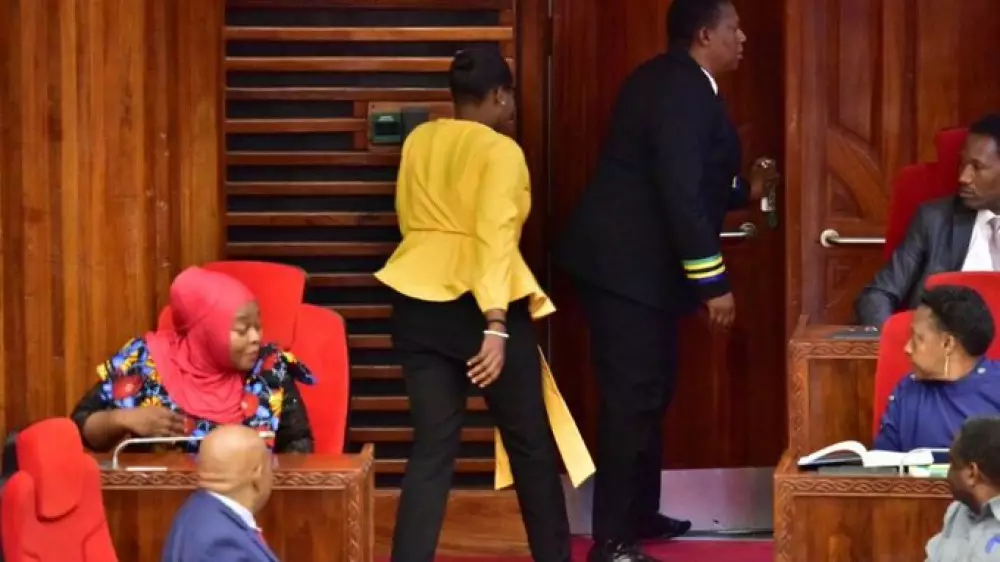 ? Tanzanian MP Condester Michael Sichlwe caused a stir in parliament in Dodoma today 'by wearing black tight-fitting trousers, and yellow top'.