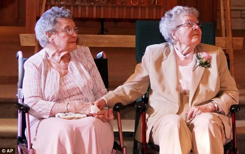 В американском городе Дэвенпорт официально вступила в брак лесбийская пара - 91-летняя Вивьен Бояк (Vivian Boyack) и 90-летняя Алиса Дюбс (Alice Dubes), сообщает DailyMail. Церемония бракосочетания состоялась в христианской церкви. Женщины во время нее сидели друг перед другом в инвалидных креслах.