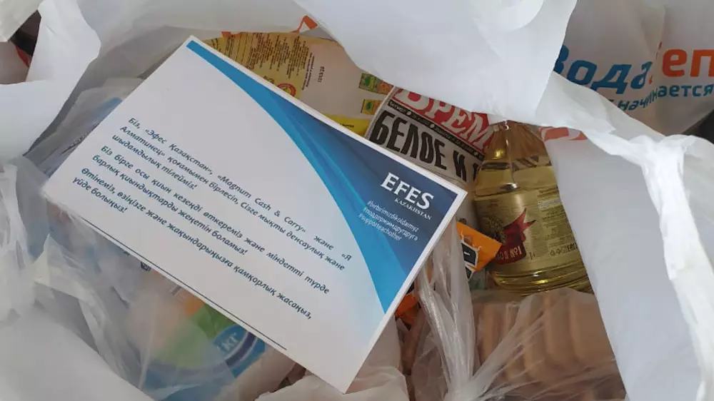 Как известно, в ходе первого этапа в партнерстве с ТОО Magnum cash & carry, ТОО "Рамстор Казахстан", The Froot Company и совместно с ОО "Я Алматинец" было доставлено 1 860 продуктовых корзин нуждающимся семьям и работникам сферы общественного питания в городах Нур-Султан и Алматы, а также в Алматинской области; было роздано 1 045 ваучеров на покупку продуктов партнерам компании "Эфес Казахстан" из канала ХоРеКа: официантам, барменам, которые остались без работы и средств к существованию.