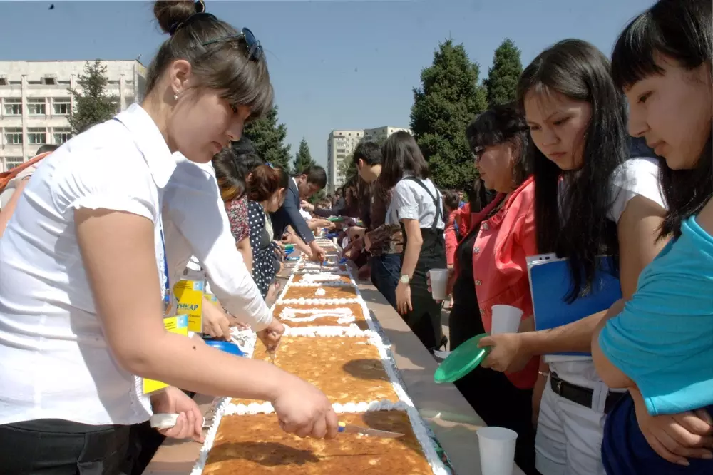 Студенты КазНУ имени аль-Фараби испекли 11-метровый пирог, передает Tengrinews.kz со ссылкой на пресс-службу университета.