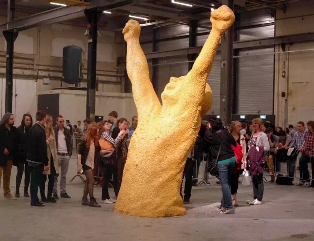 В проекте приняли участие около трех тысяч учащихся школ искусств Eindhovense и SintLucas в городе Эйндховен (Eindhoven). Недавно эти два колледжа объединились в один, и изготовление скульптуры было приурочено к этому событию. Техника выполнения работы была несложной - студенты просто жевали резинку и лепили ее на форму. В итоге получился человек, победоносно вскинувший руки, символизирующий слияние двух учебных заведений. Высота творения составила 4,5 метра.