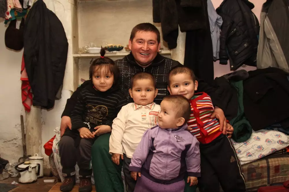 Во времянке, кроме отца с четырьмя детьми (старшая дочь сейчас живет у брата в Шымкенте), живут родственники Калмурата - всего 13 человек. По словам многодетного отца, работает только он и его брат. Когда тепло, мать Калмурата Сейдакбарова торгует на базаре мелочами.
