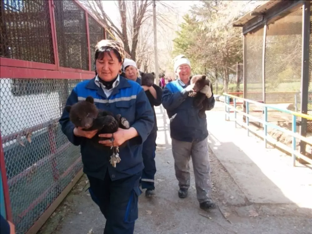 "Обычно медведи выводят своих малышей из берлоги на 25-30-й день. А на этот раз почему-то позже, наверное, из-за погоды. Детки в норме. Мама - медведица Алена кормит их молоком. Мы ей поэтому рацион увеличили и сделали его разнообразнее. В середине следующего месяца мы, наверное, их уже цирку передадим. А пока еще поживут с мамой", - говорит заведующий секцией хищников Шымкентского зоопарка Бекет Усупалиев.