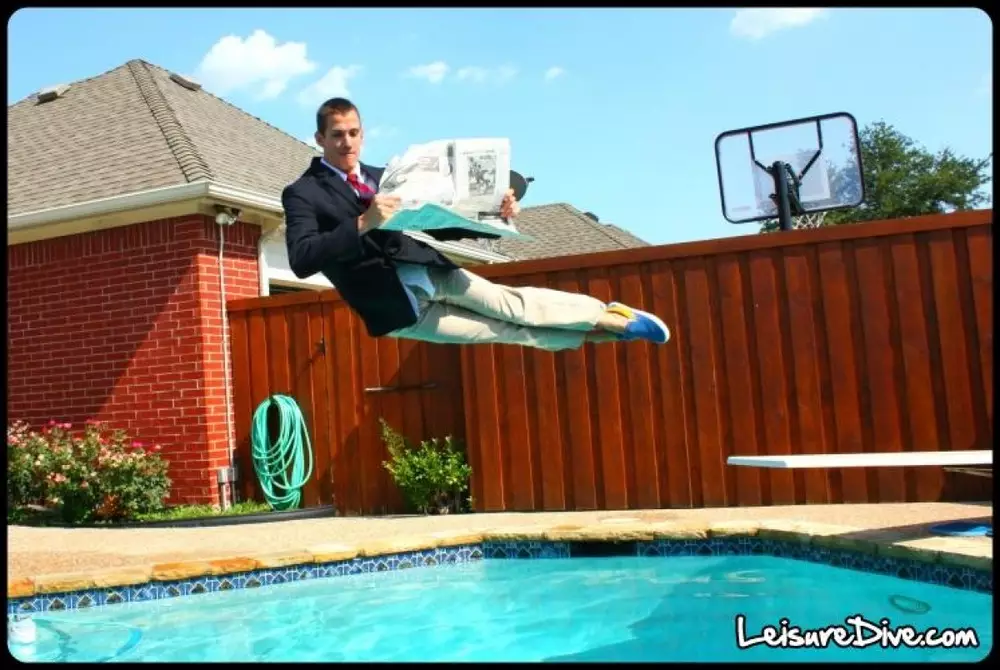 У жителей Европы и США новое увлечение - акробатические прыжки в бассейн. Фотографии прыгунов, которые перед тем, как окунуться в воду, принимают разные веселые позы, размещаются на специальном сайте LeisureDive.com. На главной странице сайта желающих приглашают показать "все, на что они способны". Владельцы ресурса со своей стороны гарантируют "разрекламировать" авторов фотографий в Интернете. Девизом поклонников нового увлечения стали слова "Живи и ныряй". LeisureDive.com рекомендует "получить максимум удовольствий от позирования перед фотокамерой". Самые удачные фигуры получаются, когда ныряльщик прыгает с доски. Тогда его тело получает достаточный импульс и время в полете.