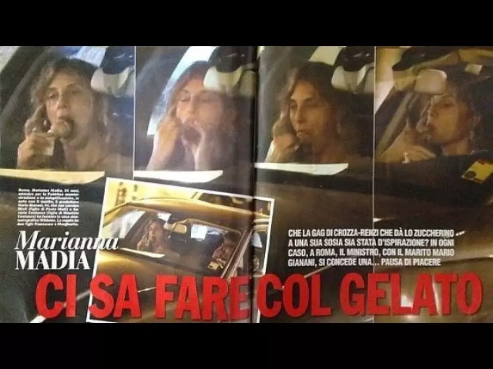 Номер журнала с фотографиями министра, сделанные папарацци в тот момент, когда 34-летняя Мадиа находилась в автомобиле со своим супругом и ела мороженое, появился в продаже на этой неделе. Фотографии министра вышли под заголовком "Она знает, как это делать с мороженым".