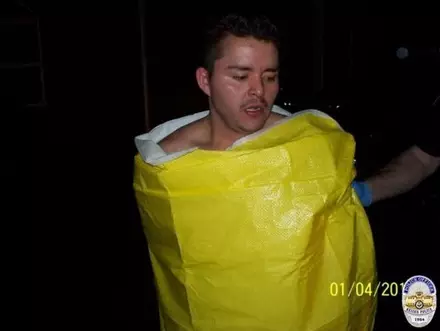 Курьезный случай произошел в городе Кайзер, штат Орегон. В ночь на 4 января домработница услышала шум в прачечной. Когда она подошла к комнате, дверь резко захлопнулась. Женщина вооружилась ножом и позвонила в службу 911. Прибывшие полицейские обнаружили обнаженного домушника, который прятался в прачечной.