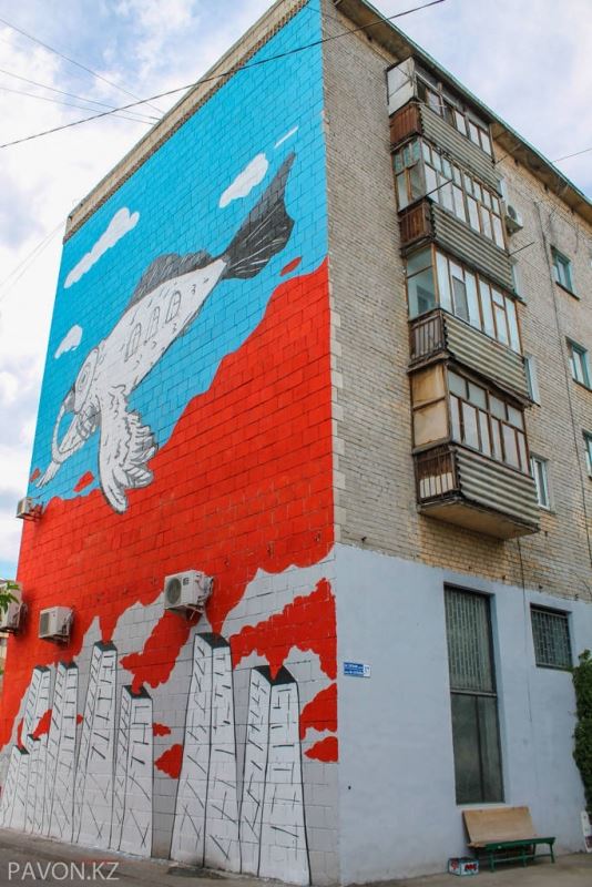 Художник Паша Кас нарисовал рыбу-мутанта на доме в Павлодаре Фото с сайта pavon.kz