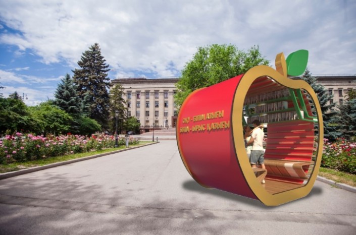 Алматы - город студентов и молодых людей. "Яблоко знаний" предлагает жителям общаться друг с другом, городом, совершать обмен знаниями, культурным кодом, интересами через книги.