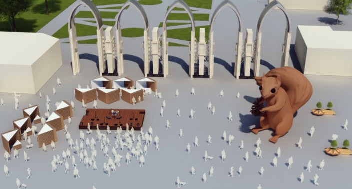 Помимо указанных работ, будет установлена самая большая в мире статуя белки по проекту художника Алекса Ринслера. Как объяснил художник, белка символизирует собой жизнь горожан.