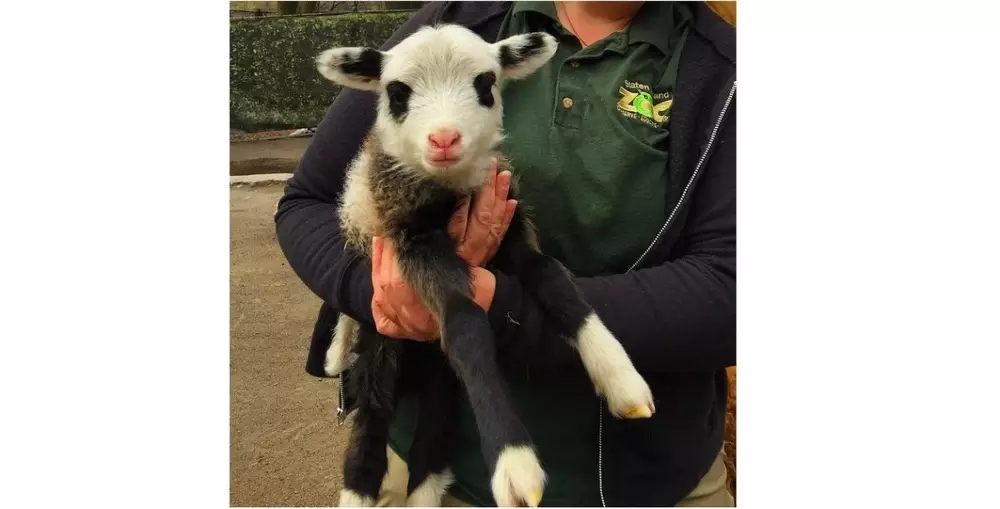 Ягненок с окрасом панды родился в зоопарке в США Фото: Facebook / Staten Island Zoo