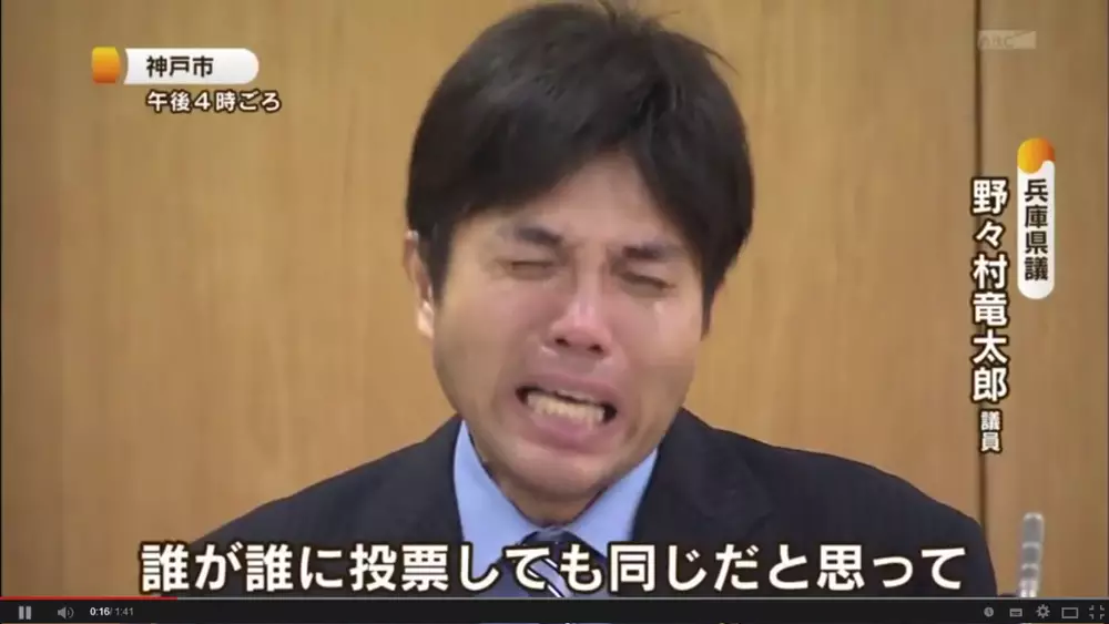 Курьезный случай произошел во время недавнего заседания ассамблеи префектуры Хего в Японии. Местный политик по имени Рютаро Нономура закатил настоящую истерику перед телекамерами, объясняя, куда из бюджета префектуры делись почти 30 тысяч долларов, сообщает телеканал RT.