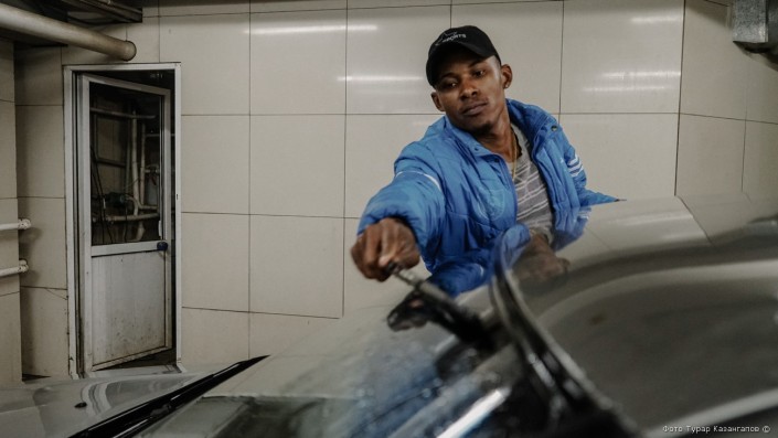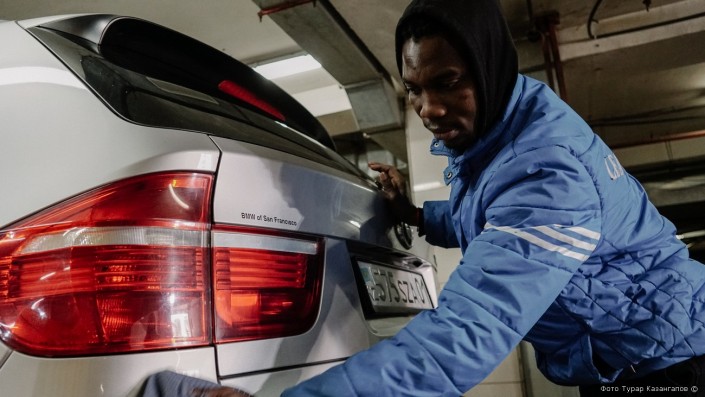 Как африканские футболисты работают на автомойке в Астане Фото Турар Казангапов ©