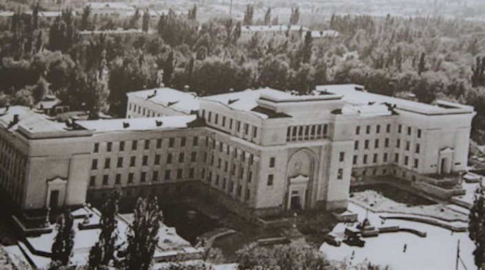 "По воспоминаниям супруги Таисии Алексеевны, Каныш Имантаевич доказывал необходимость открытия 11 новых научно-исследовательских институтов. На это Владимир Комаров говорил, что в одном единственном захудалом здании невозможно открыть сразу 11 институтов. Но Сатпаев смог его убедить, и вскоре он начал писать письма с просьбой выделить ему здания под президиум и институты. Тяжело он выбивал здания. В 1946 году он поставил вопрос проектирования и строительства главного здания Академии наук. И с этого момента Каныш Имантаевич активно начал этим заниматься. И только в 1951 году главное здание по улице Шевченко начало строиться".