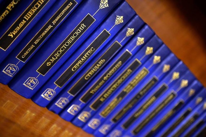 Среди казахских авторов - многотомник Сакена Сейфуллина, книги Фаризы Онгарсыновой, Ильяса Есенберлина и других известных отечественных писателей.
