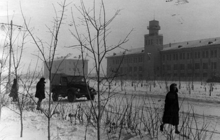 Когда-то ДКГ можно было увидеть с паркового озера. Сейчас весь этот пустырь засажен деревьями.