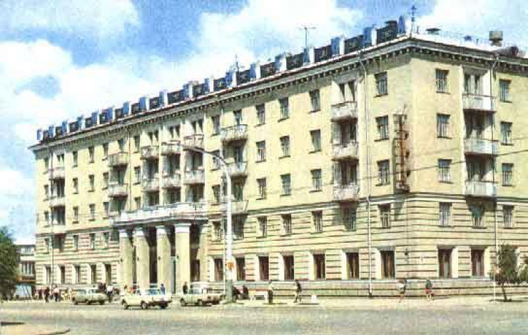 Справа от "Родины" на фото 70-х годов можно увидеть спорткомплекс имени Нуркена Абдирова, чуть дальше заметен строящийся ЦУМ. По соседству с ним сейчас стоит бизнес-центр "Казахстан", который был когда-то гостиницей.