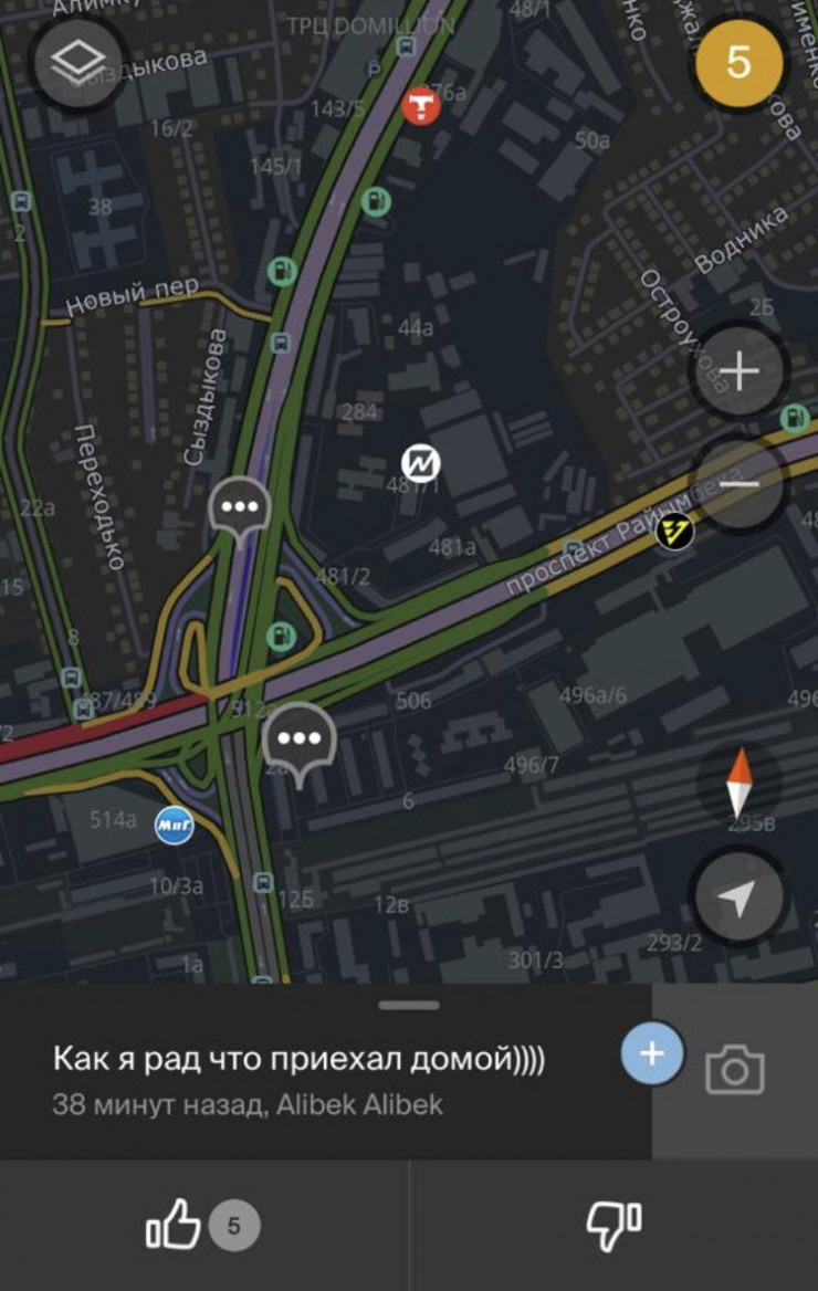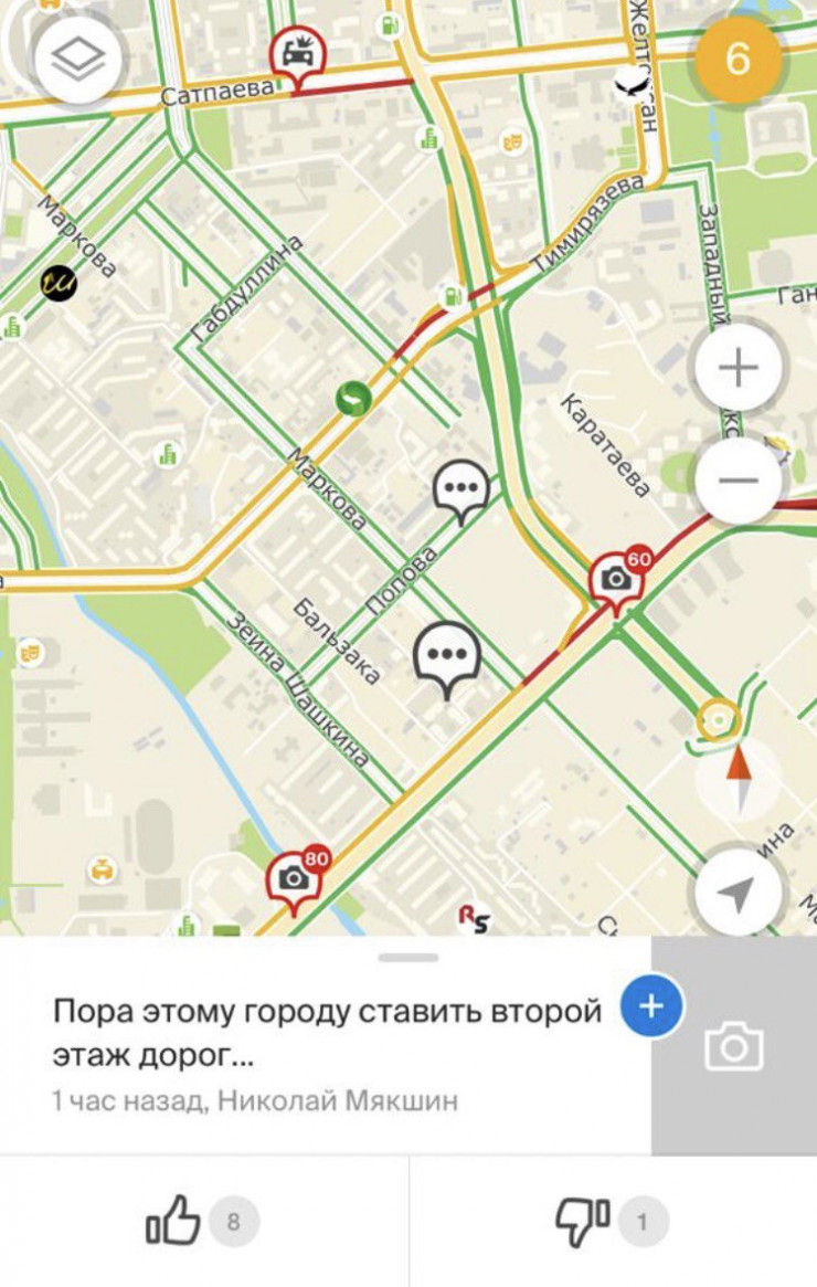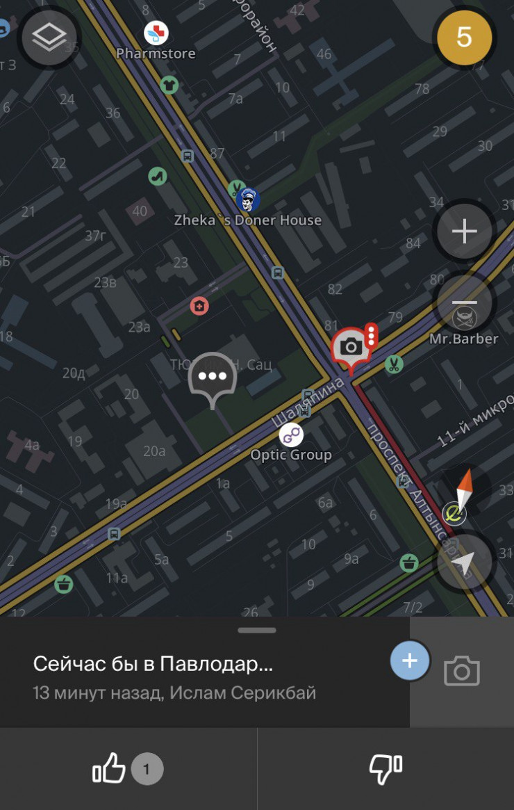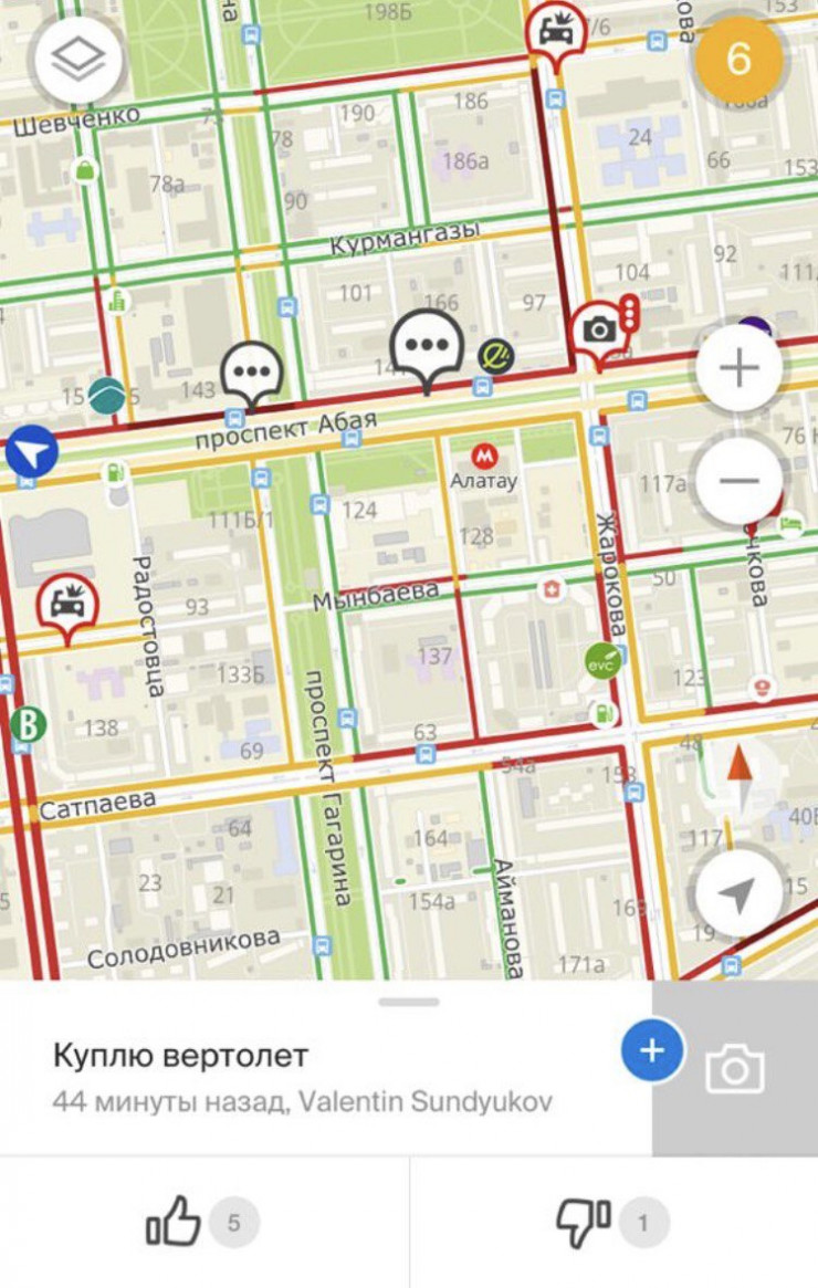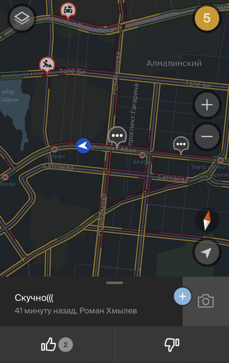 Таксист бұлай ағынан жарылған кезде бірнеше минут бойы қозғалыссыз тұрғанбыз. Амал жол, картадан кептелістерді көрсететін картаны ашып, қарап отырдым. Көшенің көбі қызыл түске боялған - кептеліс деген сөз.