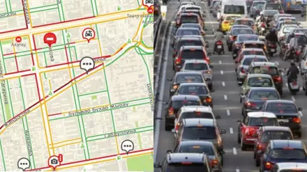 Таксист бұлай ағынан жарылған кезде бірнеше минут бойы қозғалыссыз тұрғанбыз. Амал жол, картадан кептелістерді көрсететін картаны ашып, қарап отырдым. Көшенің көбі қызыл түске боялған - кептеліс деген сөз.
