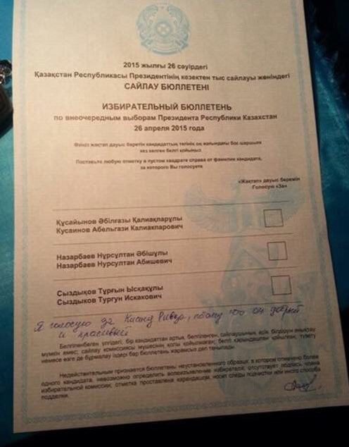 Отметим, что голоса таких шутников-избирателей учтены не будут - упоминание Киану Ривза и МС Сайлаубека сделало непригодными документы для голосования.