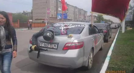 День Победы для многих казахстанцев это не только официальные мероприятия, посещение парадов и маршей или встречи с ветеранами, но и возможность оригинально отметить еще один общий для всех жителей бывшего Советского Союза праздник и проявить свой талант. Жители многих регионов 9 мая не только посещают полевые кухни и поют фронтовые песни, но еще и надевают тематические костюмы и украшают свои автомобили военной атрибутикой. Tengrinews.kz решил собрать наиболее интересные фотографии и видео оригинальных моментов празднования 70-летия Победы. Их главными героями являются не участники официальных шествий, а люди, продемонстрировавшие 9 мая креативное мышление.