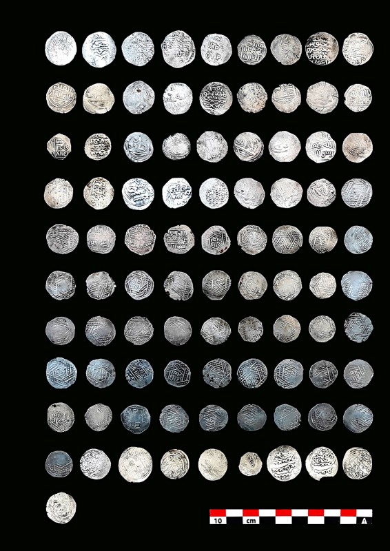Всего найдена 91 серебряная монета, на 47 из них имеется надпись с именем Абага-хана, правившего государством Ильханидов в 1265-1282 годы. Еще на 36 монетах прочитывается имя Аргун. С таким именем в тот период были известны две крупные исторические фигуры - Аргун-хан, правивший государством Ильханидов в 1284-1291 годы, и туркменский Аргун-шах, правивший Хорасаном с резиденцией в Мерве.