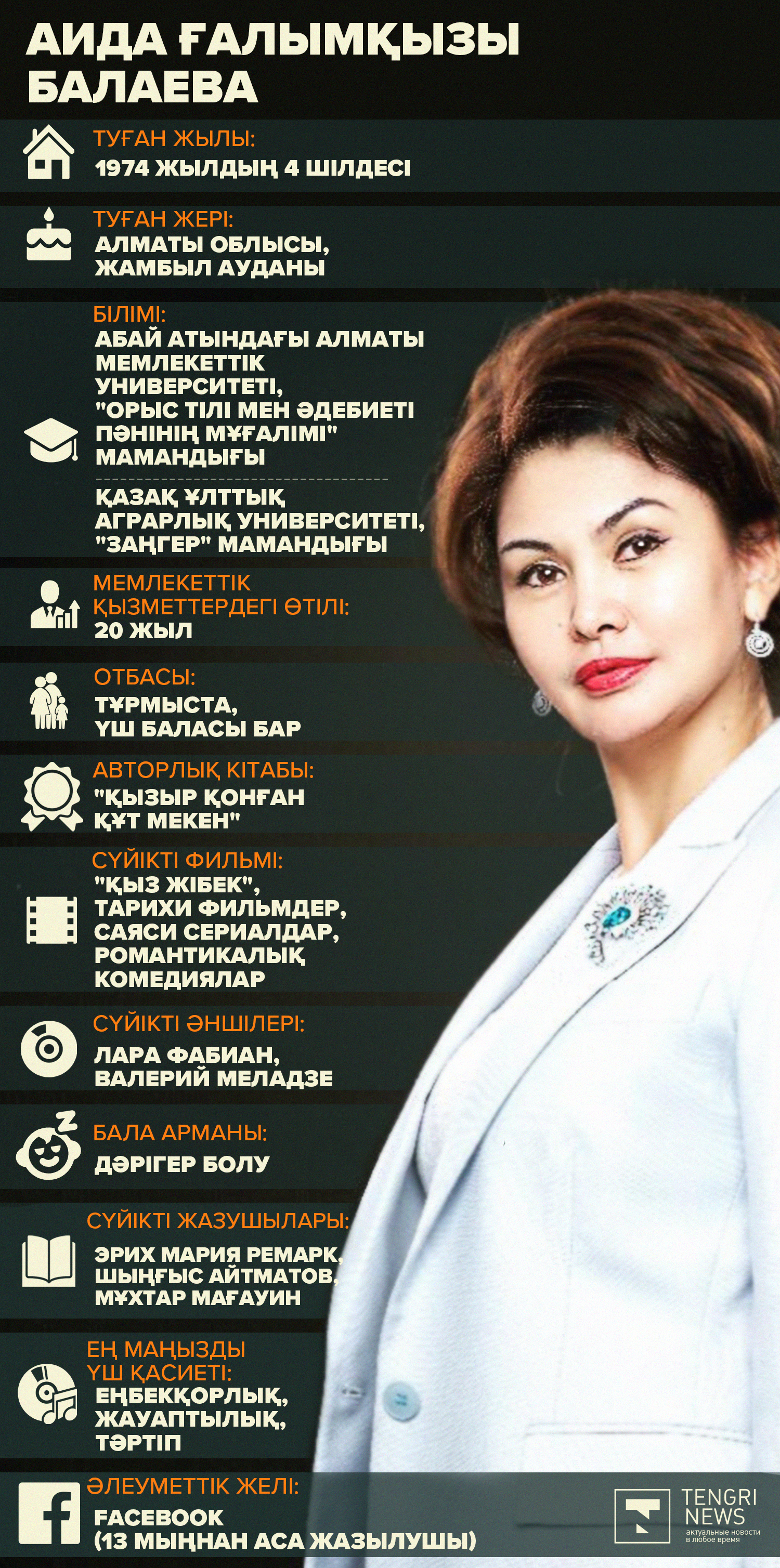 Өткен айда Аида Балаева Қазақстан Республикасы Президентінің көмекшісі болып тағайындалған еді. Оның Президент көмекшісі - Президенті Әкімшілігінің Өтініштерді қарауды бақылау бөлімінің меңгерушісі болып қызмет етіп келе жатқанына бір айдан асты. Бұл оның мемлекеттік қызметтердегі жетінші жұмыс орны. Tengrinews.kz тілшісі Аида Балаева туралы деректерді жинап шықты.