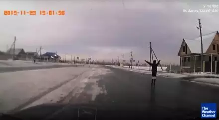 На кадрах, которые засняты видеорегистратором в конце ноября во время сильного гололеда в регионе, видно, как конькобежец обгоняет машины. The Weather Channel выложил на официальной странице данный ролик в рубрике трендовых видео. Диктор метеорологического издания негодует, как парень из Казахстана смог так легко обогнать автомобиль.