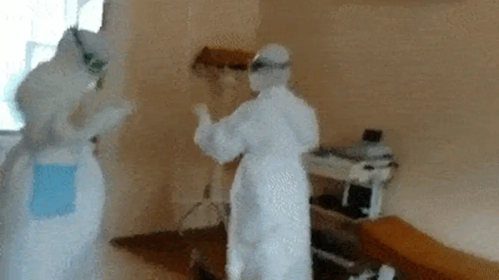 "Болезнь отступает. Два дня, как не поступает ни один человек. Наши девушки радуются этому и танцуют", - рассказала женщина за кадром.