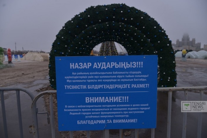 Центральный ледовый городок в Астане, где 1 декабря Президент Казахстана Нурсултан Назарбаев зажег главную елку страны, закрыли для посетителей, передает корреспондент Tengrinews.kz.