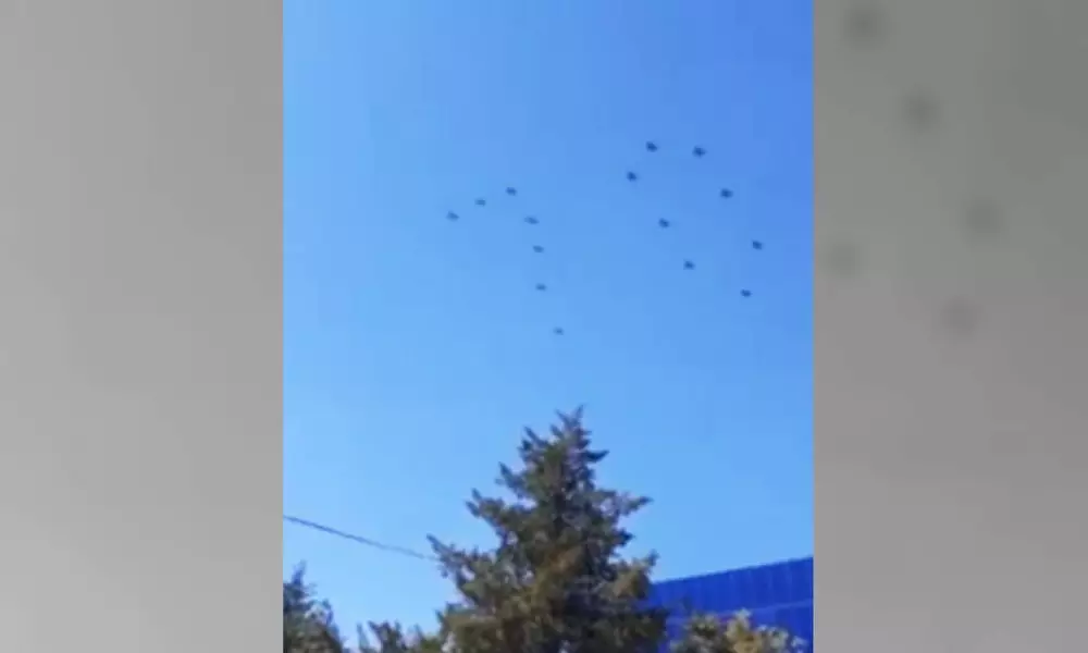 Летчики в Шымкенте выстроили в небе цифру 70 Скрин с видео из соцсети facebook.com/Виктория Ульянова.
