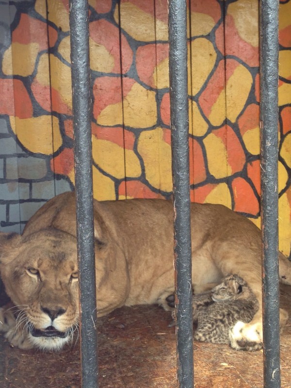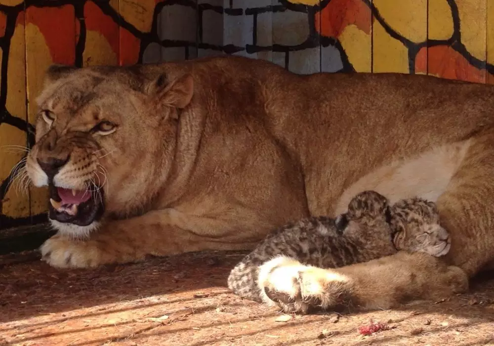 Мама львят - Маркиза - зорко охраняет свое потомство. Фото предоставлено сотрудниками зоопарка "Фортуна".