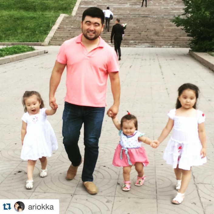 Маленькие сестры из Алматы стали звездами Интернета Амина, Адия и Аружан с папой Рамазаном. © instagram.com/aminokka