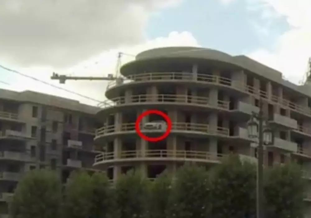 Отмечается, что видеорегистратор запечатлел машину на одном из верхних этажей здания на Крестовском острове. Комментаторы предположили, что таким образом владелец дорогой машины решил обезопасить себя от воров.
